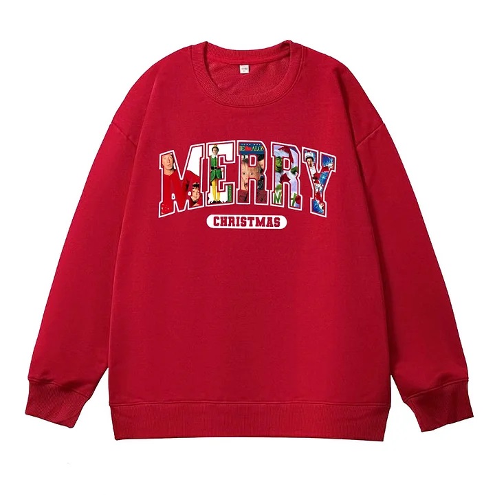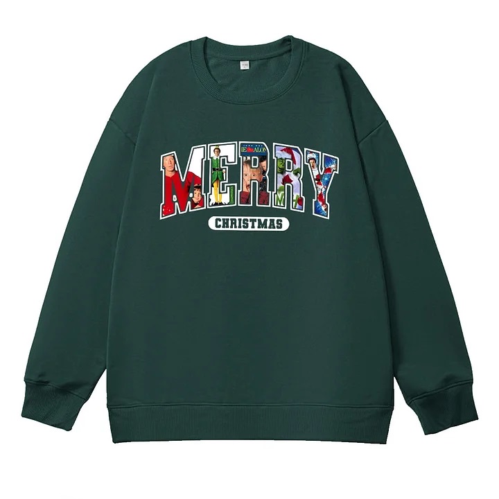 Merry Christmas Pattern 100% 300g CottonCrew Neck Sweatshirt