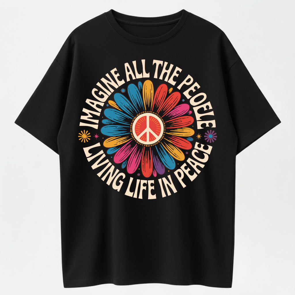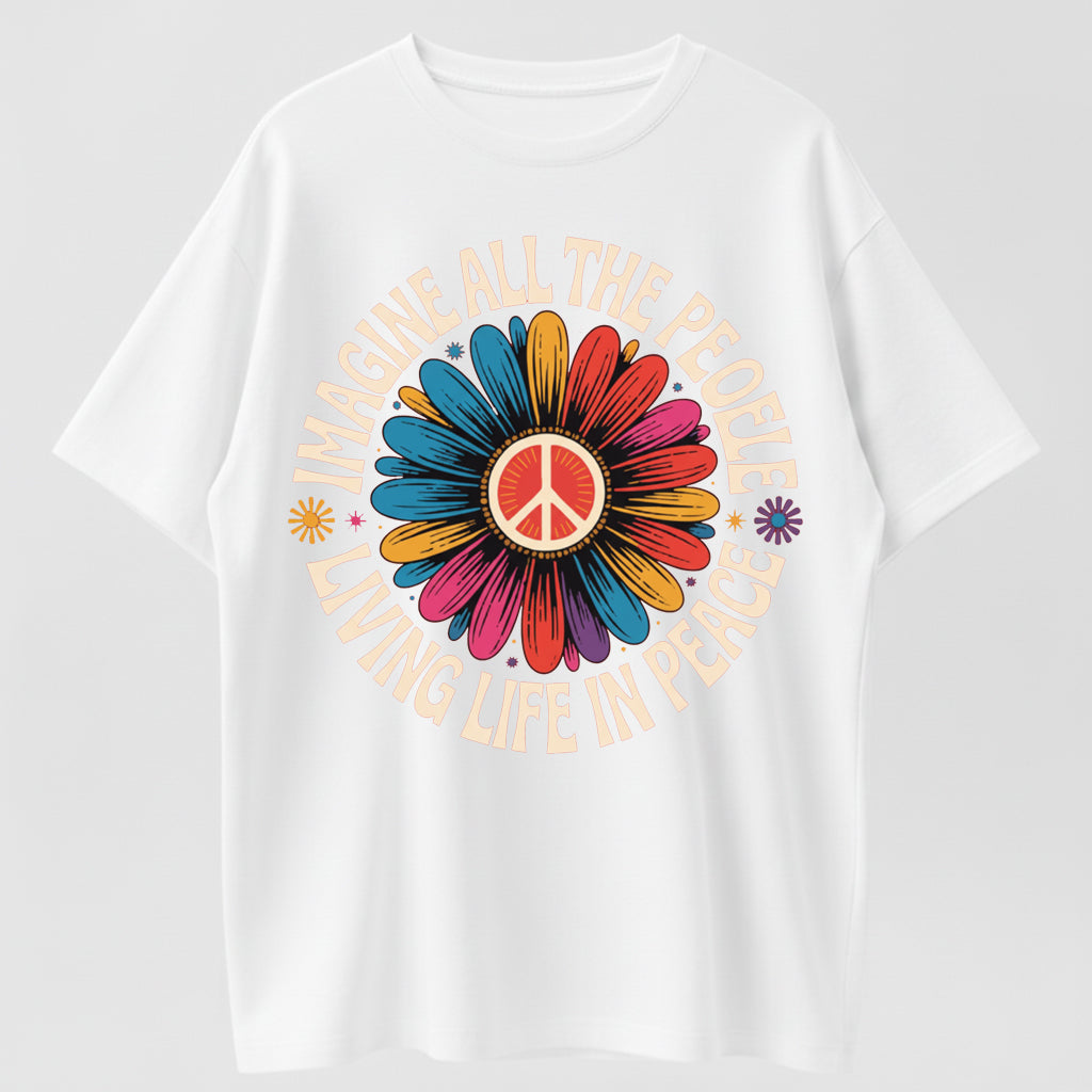 Imagine All the People Living Life in Peace Floral Daisy T-Shirt