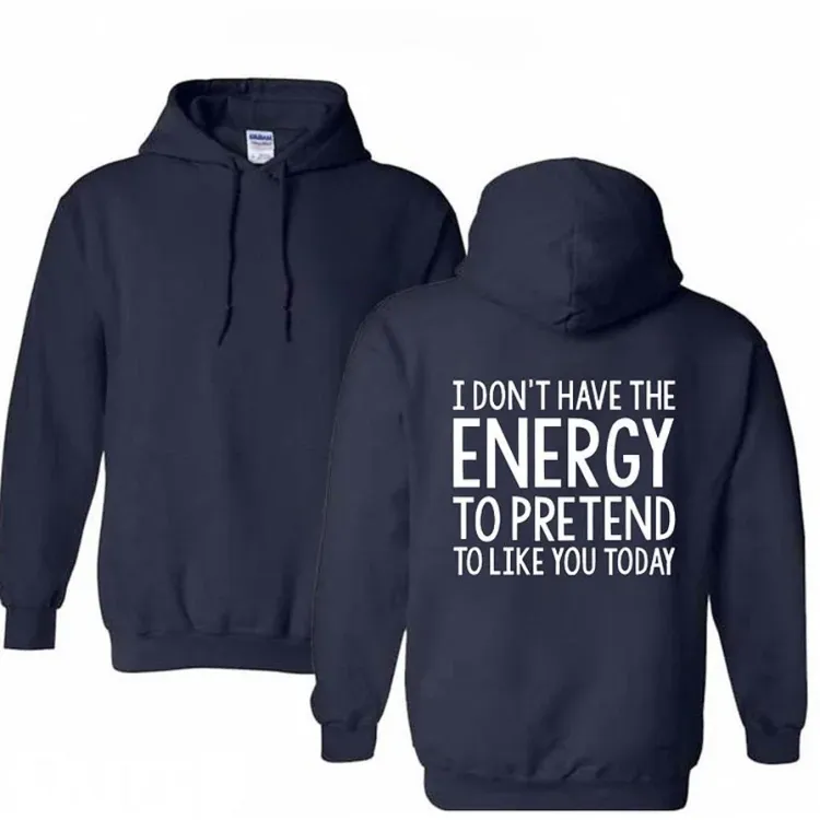 I Don'T Have The Energy To Pretend To Like You Today Pattern 100% 300g Cotton Classic Hoodie