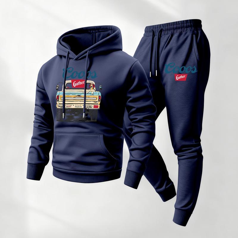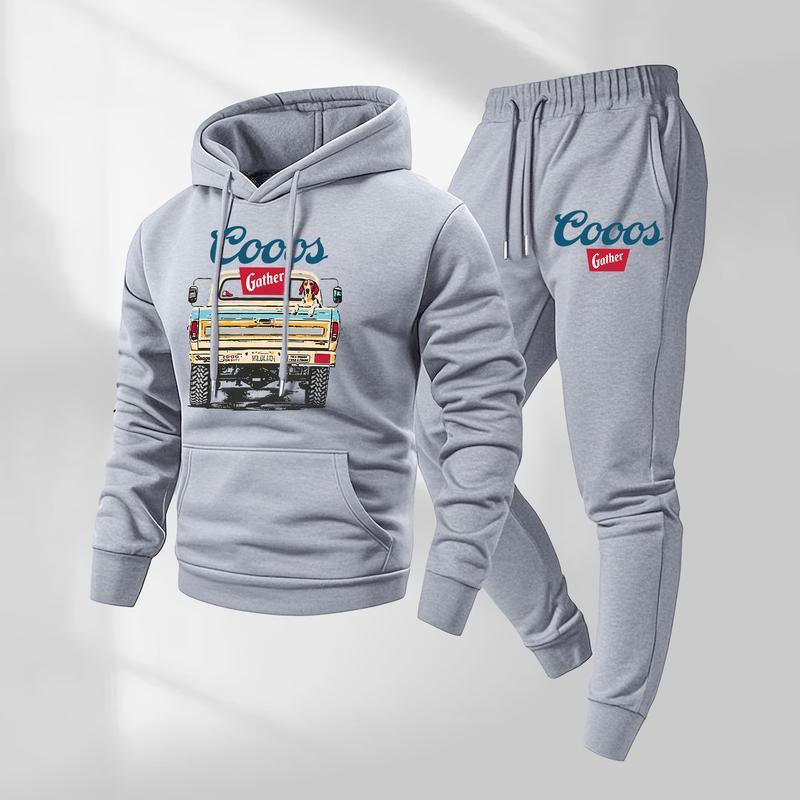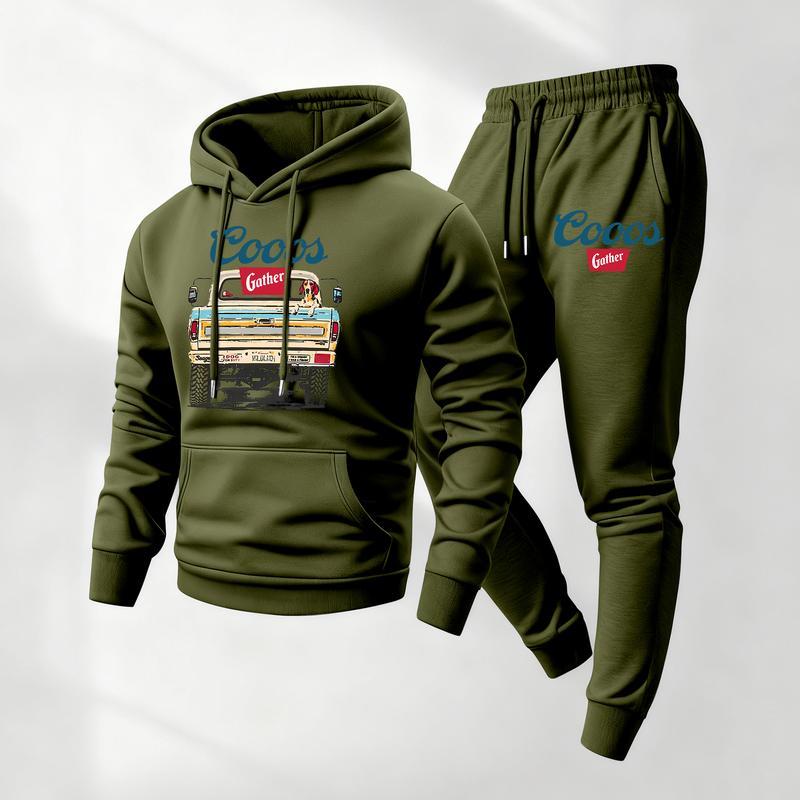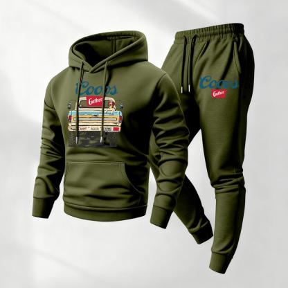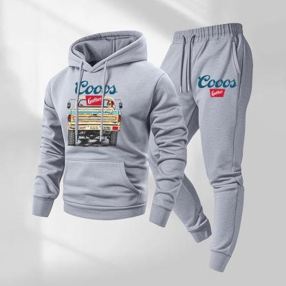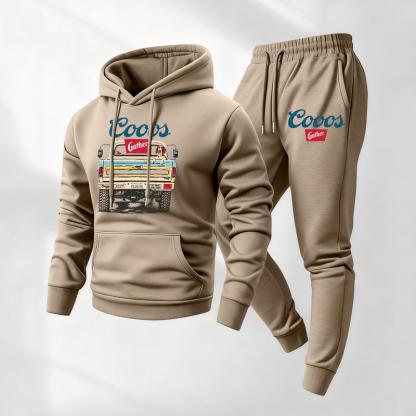 Mens Retro Print Hoodie & Sweatpants Set – Classic Western Style, Cozy Men’s Tracksuit for Beer Fans